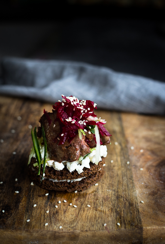 See väga mõnus leivast valmistatud suupiste, mida katab kodujuust, peedis marineeritud kanamaks ning värske kurk. Sobib ideaalselt eelroaks!
